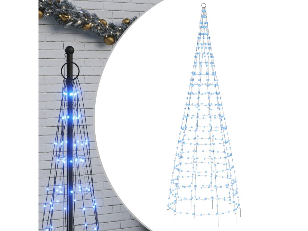 vidaXL LED vianočný stromček na stožiari 550 LED modré 300 cm