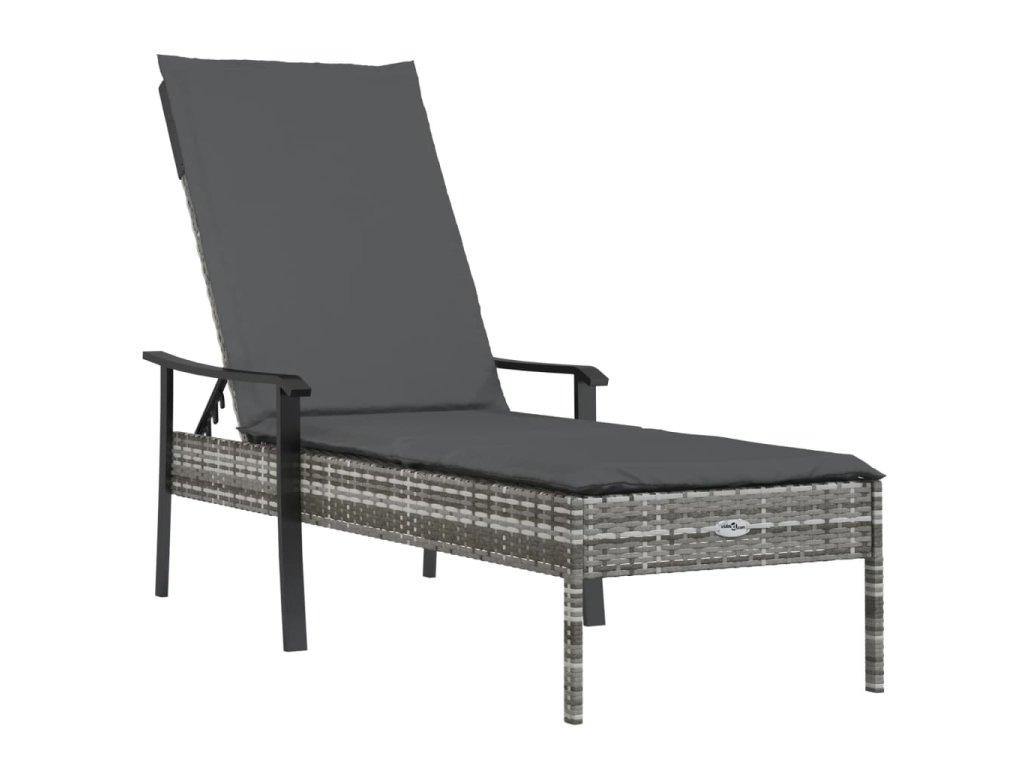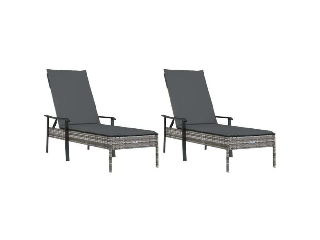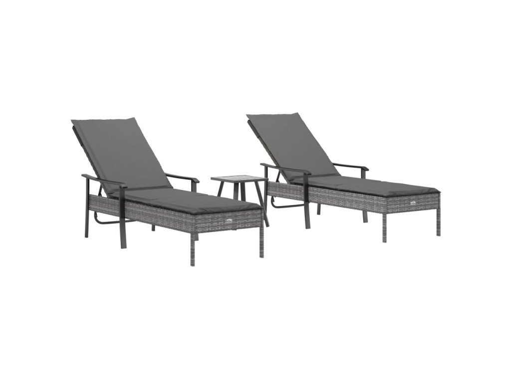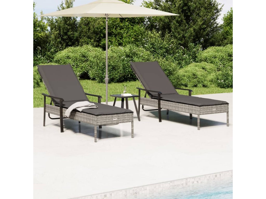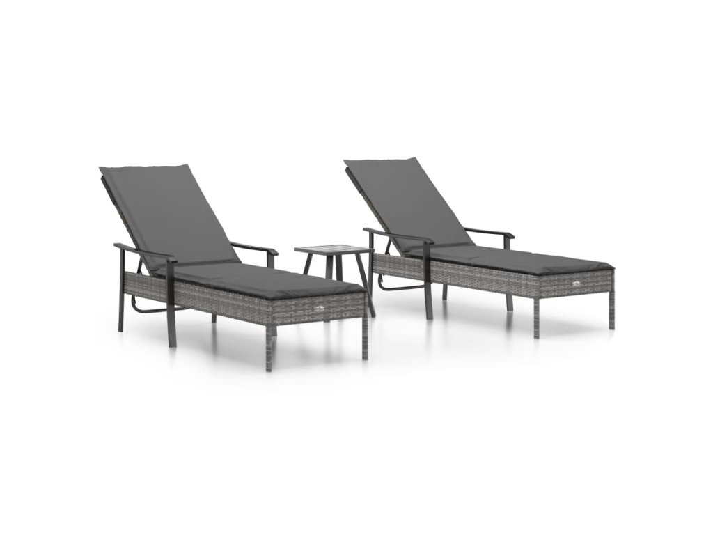 vidaXL Lehátka 2 ks so stolíkom a vankúšmi sivé polyratan