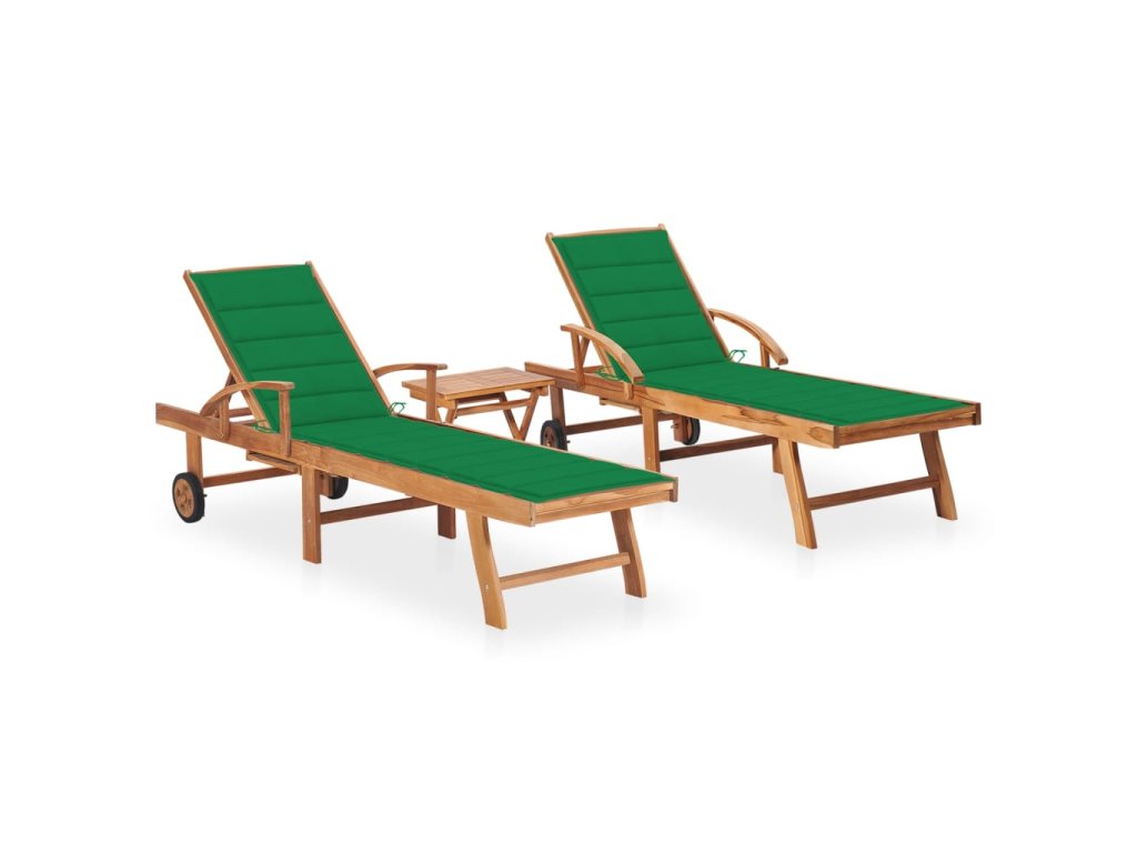 vidaXL Lehátka s vankúšmi a stolom 2 ks teakové drevo