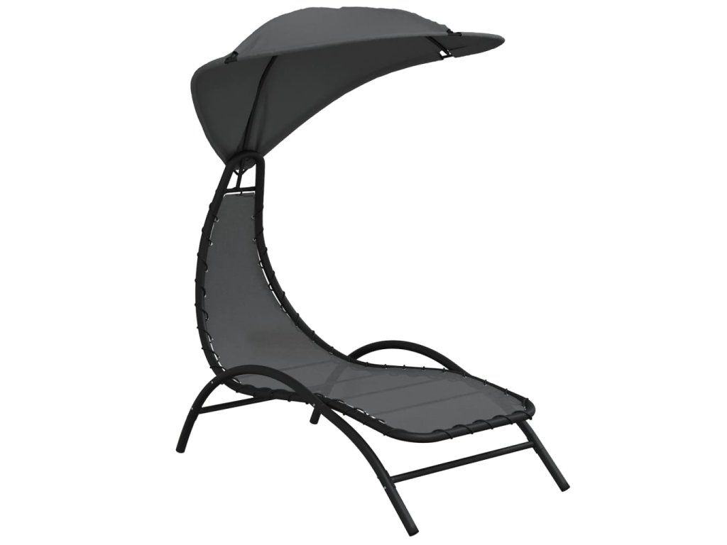 vidaXL Lehátko so strieškou tmavosivé 167x80x195 cm látka a oceľ