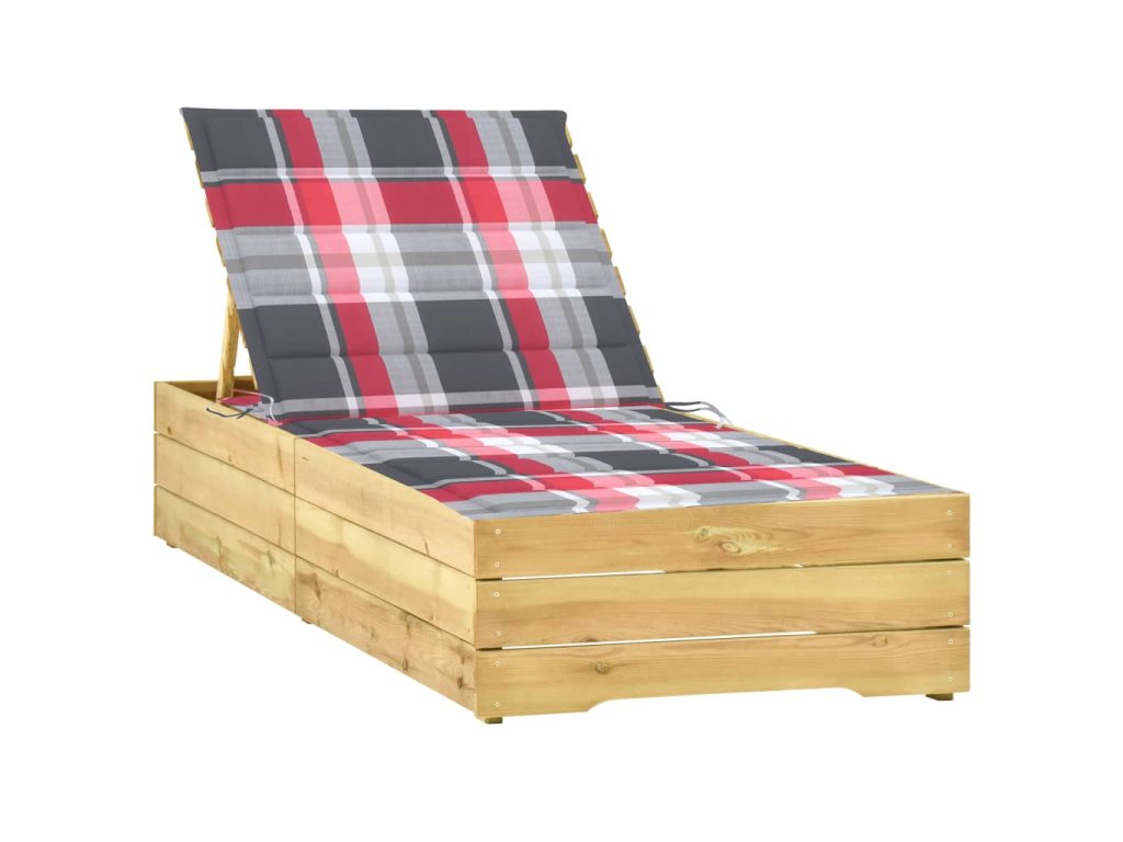 vidaXL Ležadlo, červená kockovaná podložka, impregnovaná borovica
