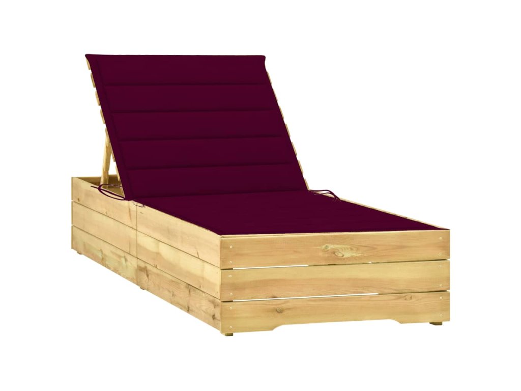 vidaXL Ležadlo s vínovočerveným vankúšom impregnované borovicové drevo