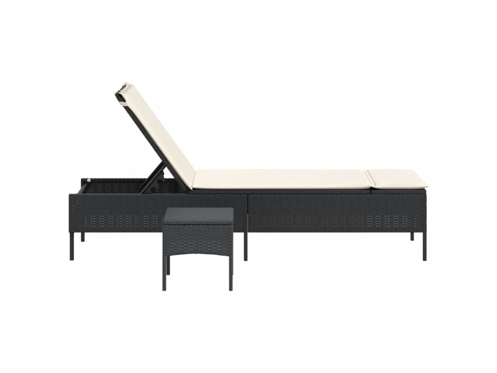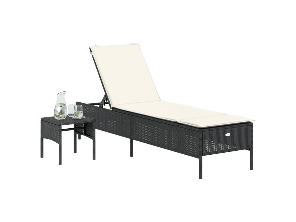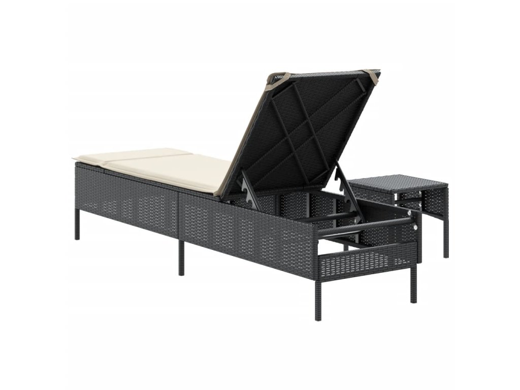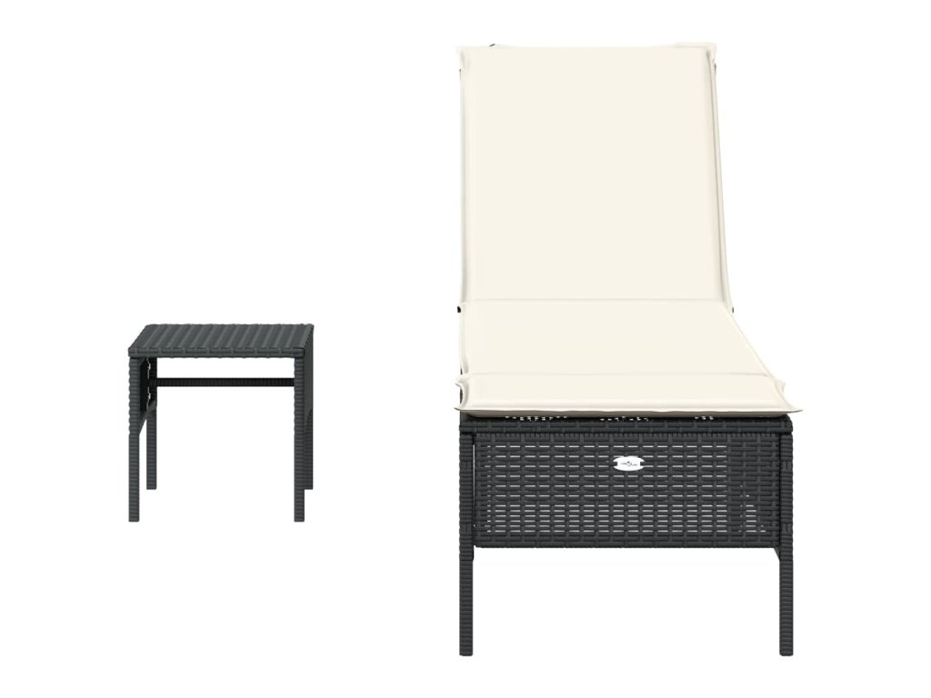 vidaXL Ležadlo so stolíkom a vankúšom čierne polyratan