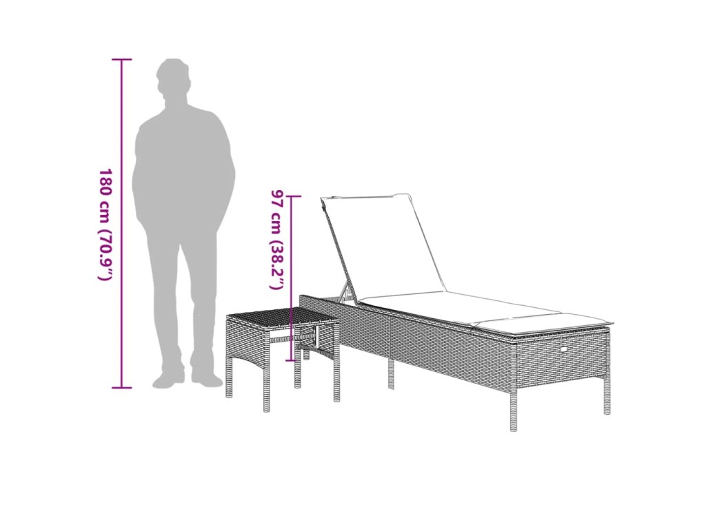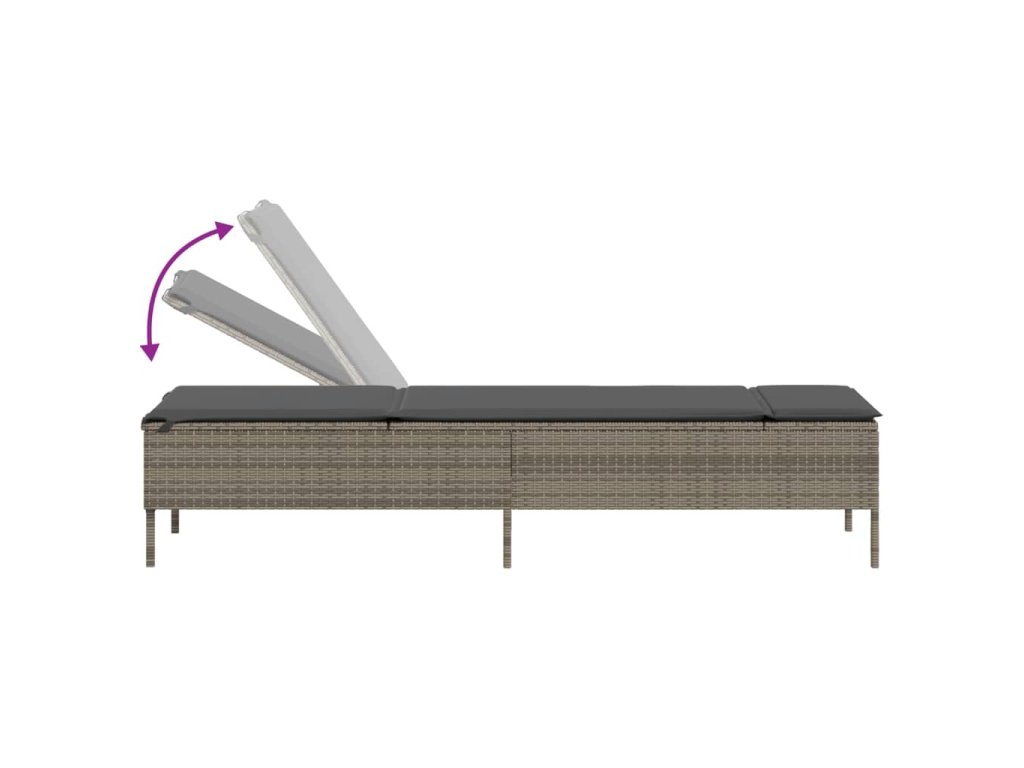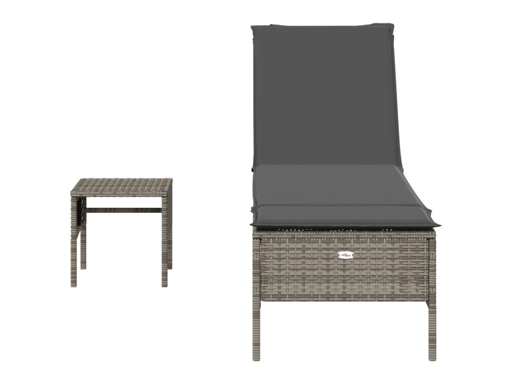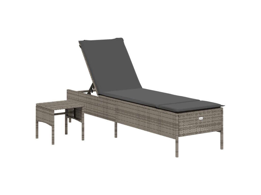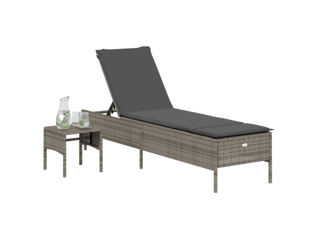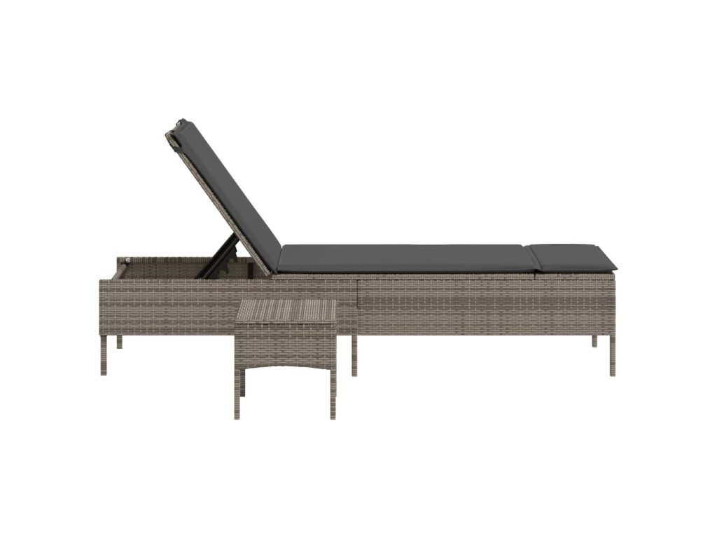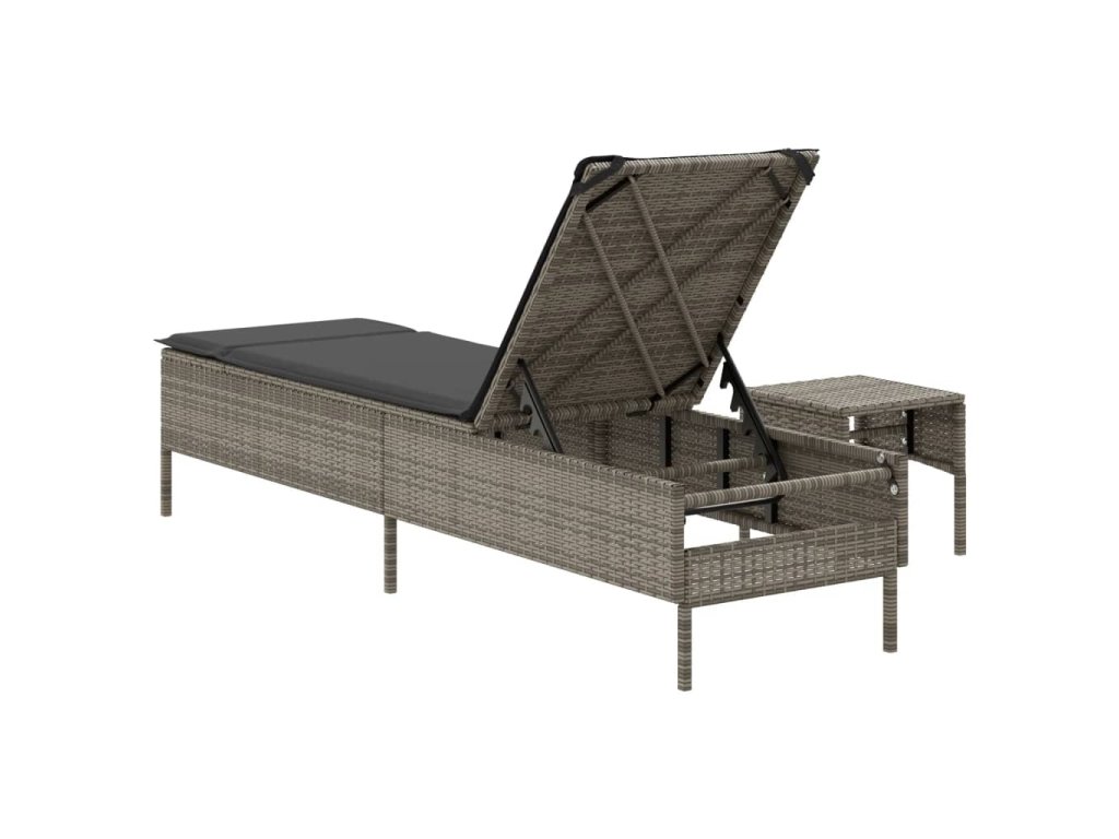 vidaXL Ležadlo so stolíkom a vankúšom šedé polyratan