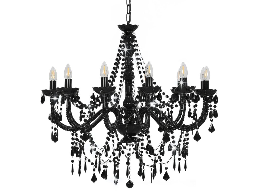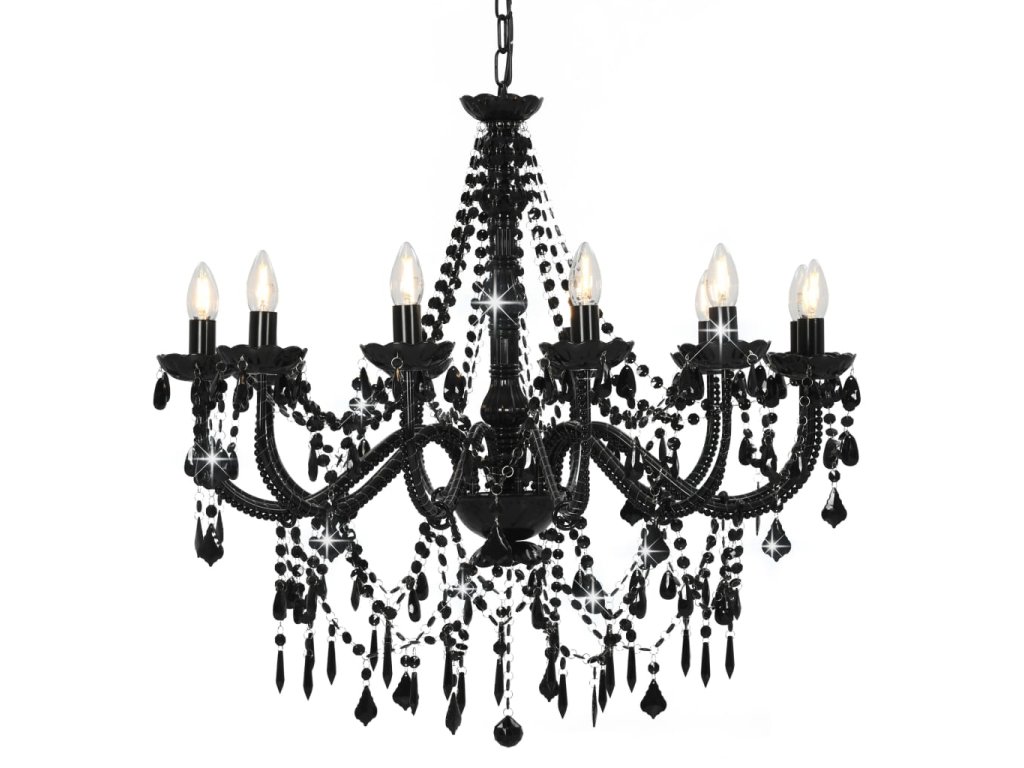 vidaXL Luster s korálkami čierny 12 x E14 žiaroviek
