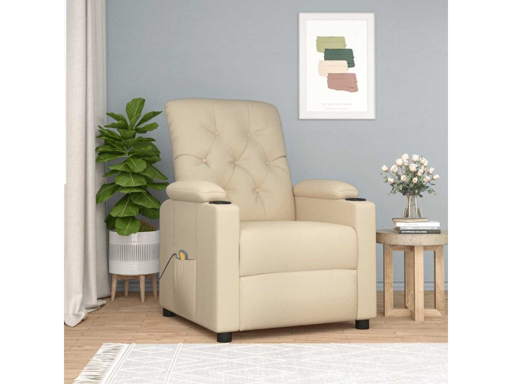 vidaXL Masážne kreslo, krémové, látka