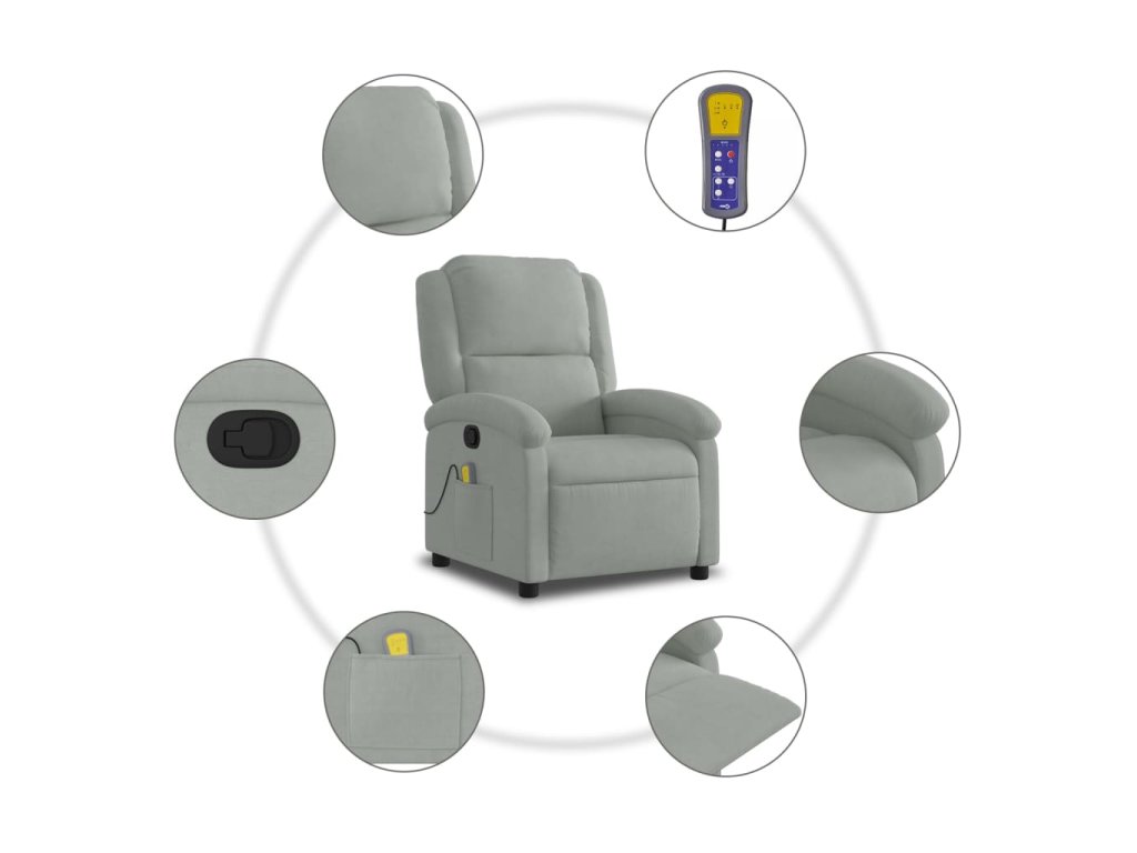 vidaXL Masážne sklápacie kreslo bledosivé zamatové