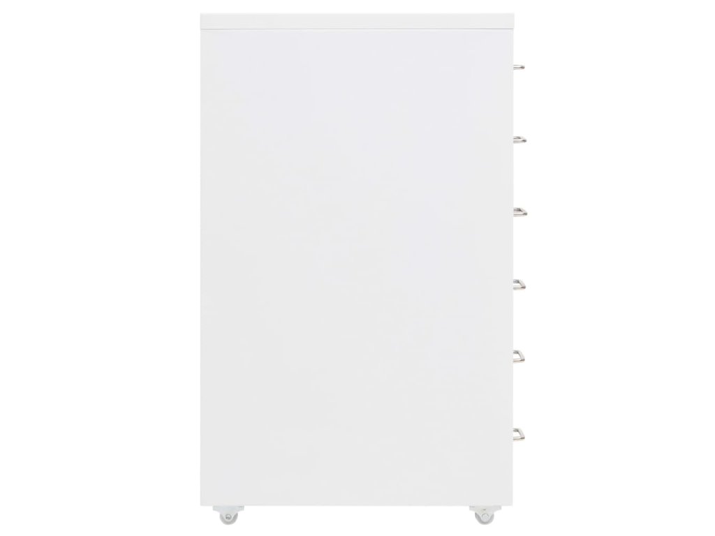 Táto kancelárska skriňa je vyrobená z kovu, takže je odolná a ľahko sa čistí. Má 6 zásuviek a do kovových úchytiek môžete umiestniť menovky, čo vám umožní prehľadne triediť šanóny do rôznych kategórií. Vďaka 4 kolieskam sa táto skriňa ľahko premiestňuje. Vďaka svojmu ikonickému dizajnu sa bude hodiť do každej kancelárie. Okrem toho sa skriňa ľahko čistí vlhkou handričkou.