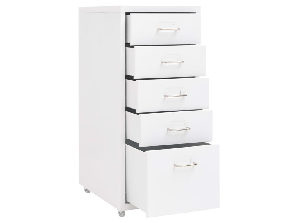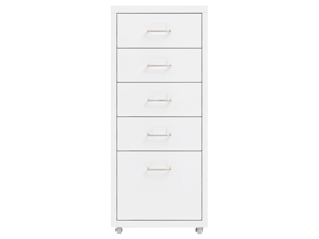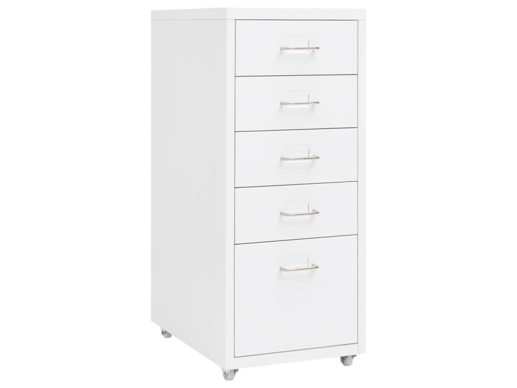 Táto kancelárska skriňa je vyrobená z kovu, takže je odolná a ľahko sa čistí. Má 5 zásuviek a do kovových úchytiek môžete umiestniť menovky, čo vám umožní prehľadne triediť šanóny do rôznych kategórií. Vďaka 4 kolieskam sa táto skriňa ľahko premiestňuje. Vďaka svojmu ikonickému dizajnu sa bude hodiť do každej kancelárie. Okrem toho sa skriňa ľahko čistí vlhkou handričkou.