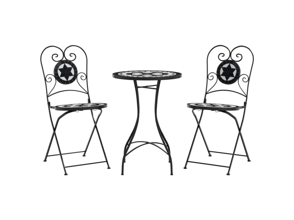 vidaXL Mozaiková bistro súprava čierno-biela železo a keramika