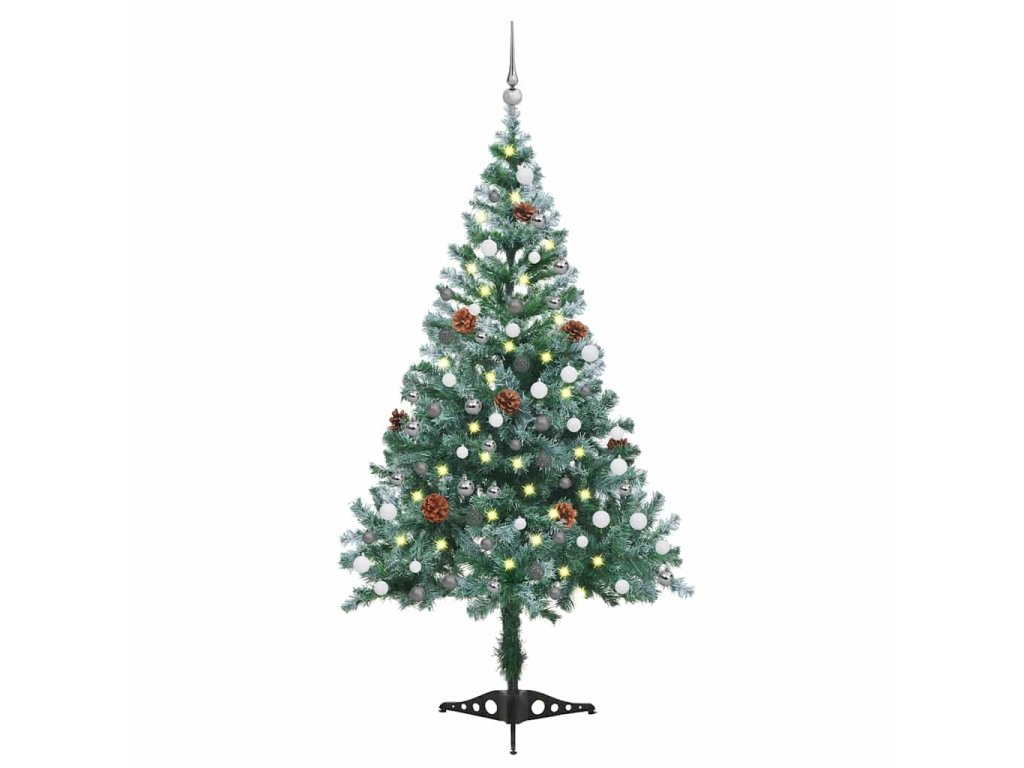 vidaXL Mrazom pokrytý osvetlený vianočný stromček+gule a šišky 150 cm