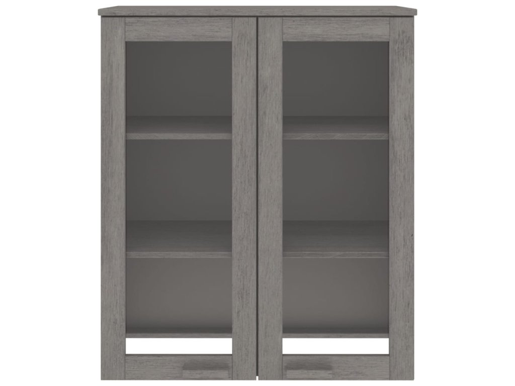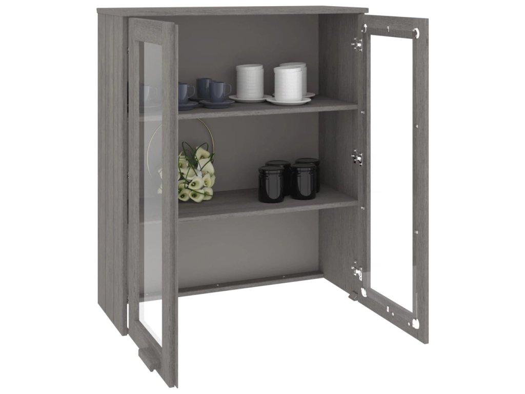 Je vyrobená z masívneho borovicového dreva, vďaka čomu je stabilná a pevná. Má tri stabilné police, na ktoré môžete umiestniť poháre, rámiky na fotografie alebo iné predmety, ktoré chcete mať na dosah. Sklenené dvierka zároveň zabránia vniku prachu. Vrchná časť skrinky bude skvelou voľbou na vytvorenie ďalšieho úložného priestoru.
