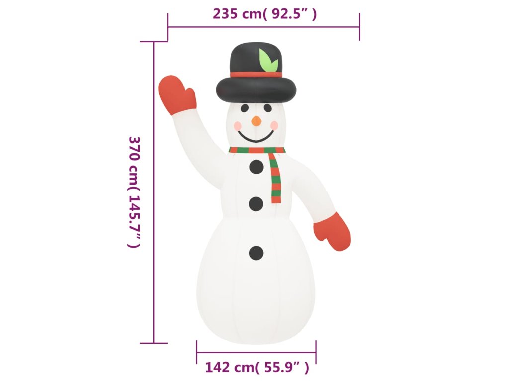 Tento nafukovací snehuliak je určite skvelou voľbou, ak hľadáte pôsobivú dekoráciu pre váš dom alebo dvor v čase Vianoc.