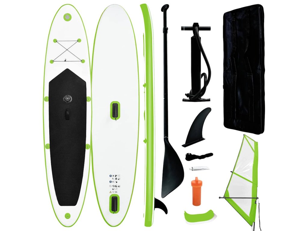 vidaXL Nafukovací Stand up paddleboard s plachtou, zeleno biely