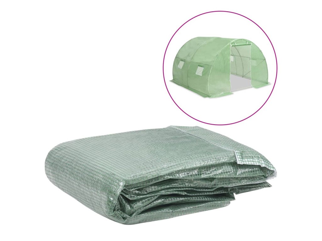 Náhradná plachta na skleník je vyrobená z PE, ktorý je ťažší než štandardná sieťovina. Skleníková plachta disponuje štyrmi okienkami na vetranie a jednými dverami.