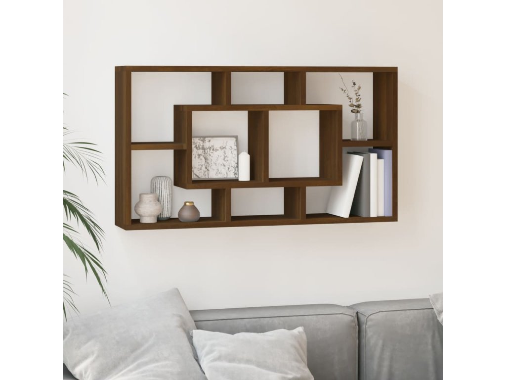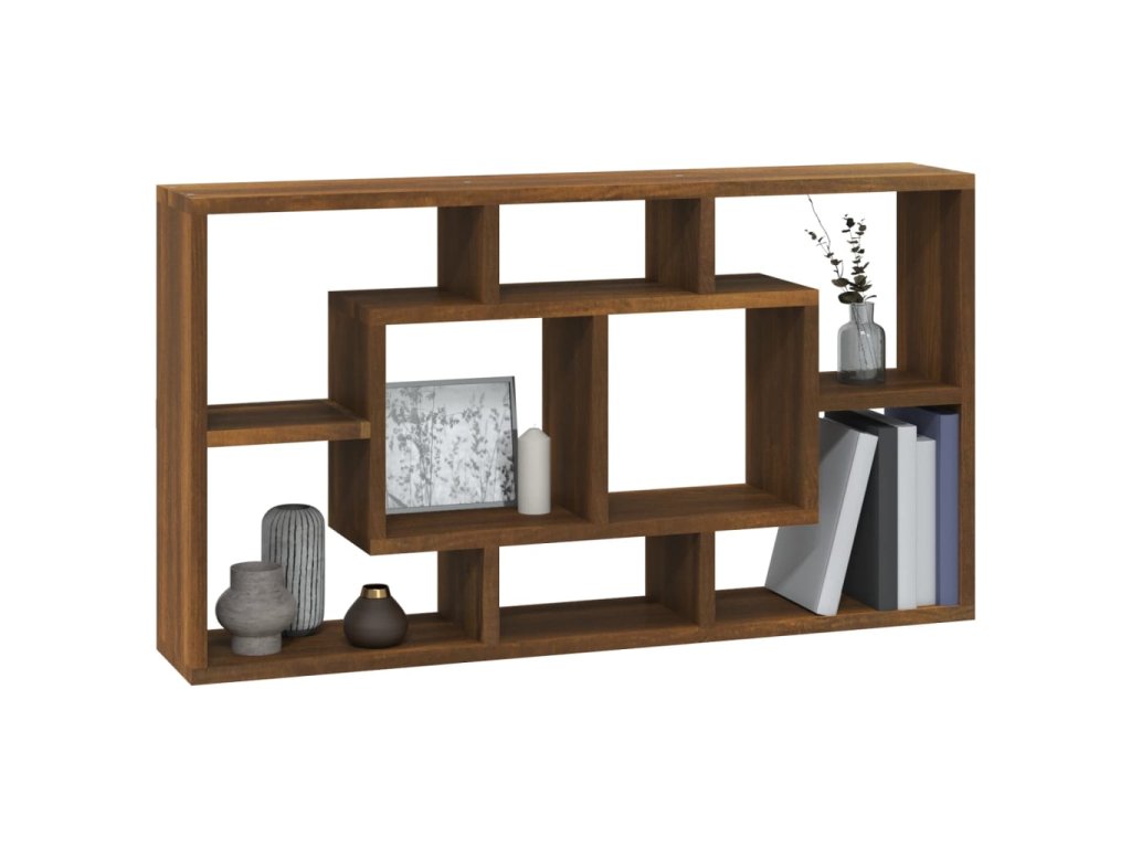 vidaXL Nástenná polička s 8 priehradkami hnedý dub
