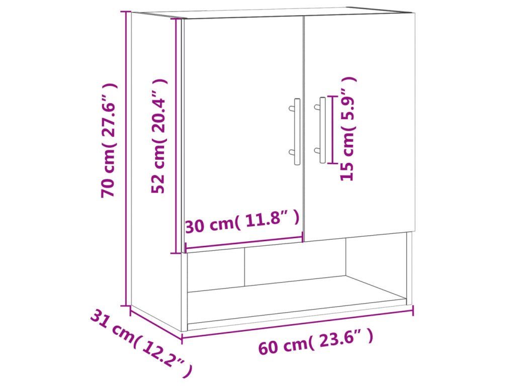vidaXL Nástenná skrinka dymový dub 60x31x70 cm kompozitné drevo