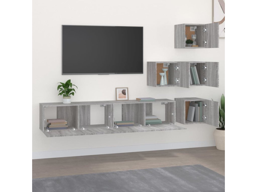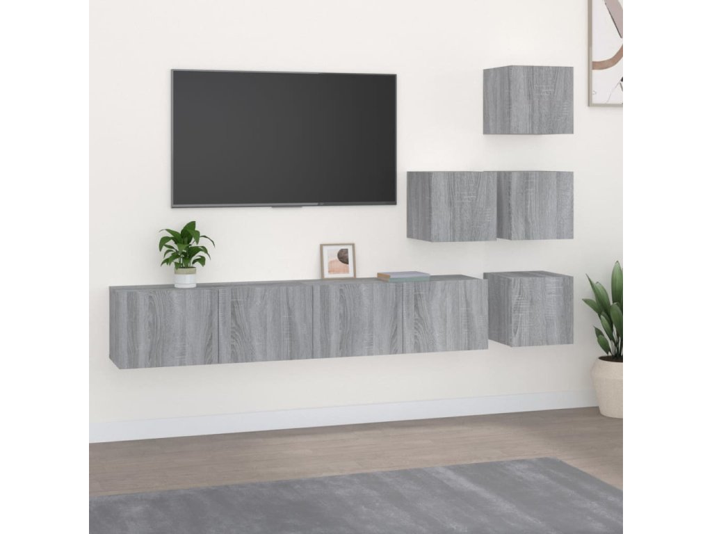 vidaXL Nástenná TV skrinka sivá dub sonoma spracované drevo