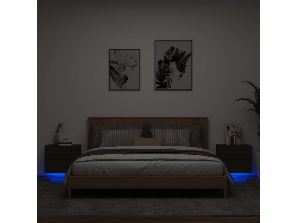 vidaXL Nástenné nočné skrinky s LED osvetlením 2 ks čierne