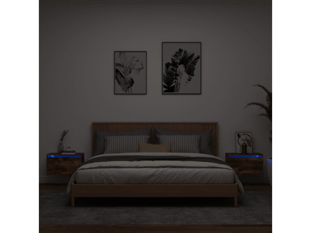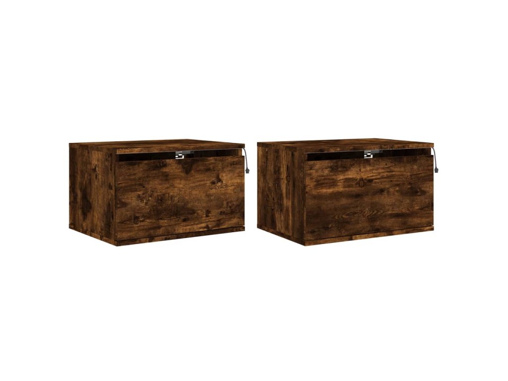 vidaXL Nástenné nočné skrinky s LED osvetlením 2 ks dymový dub
