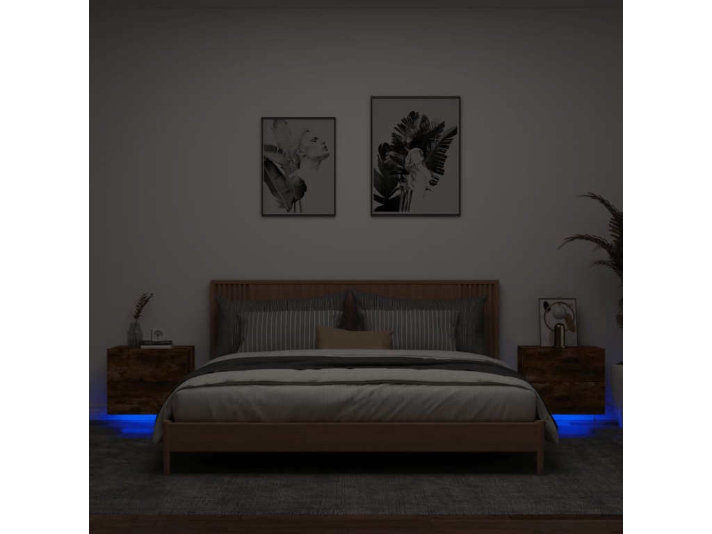 vidaXL Nástenné nočné skrinky s LED osvetlením 2 ks dymový dub
