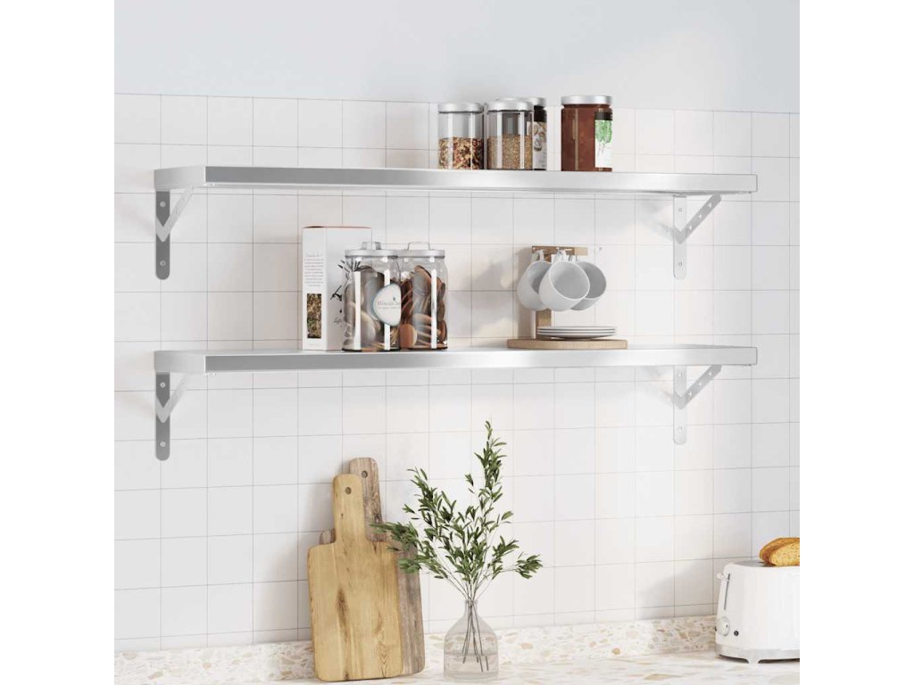 vidaXL Nástenné police 2 ks 100x23,5x3cm strieborné nehrdzavejúca oceľ