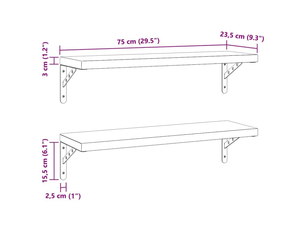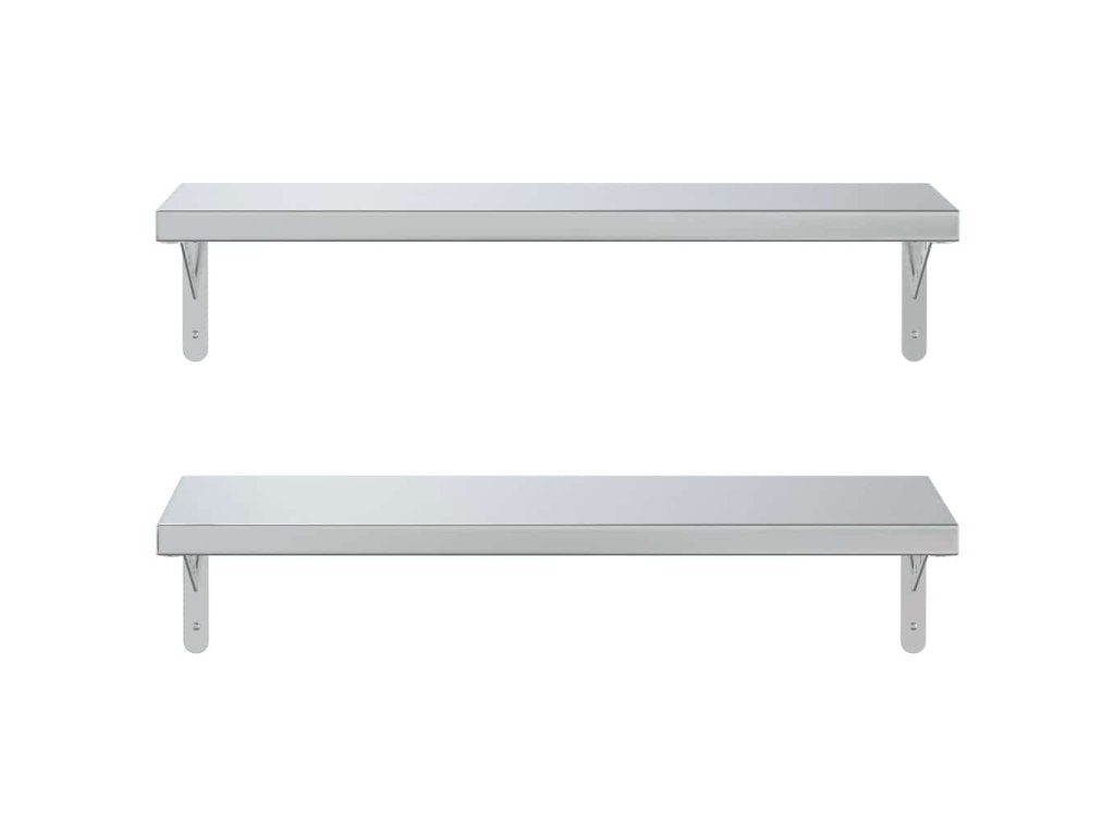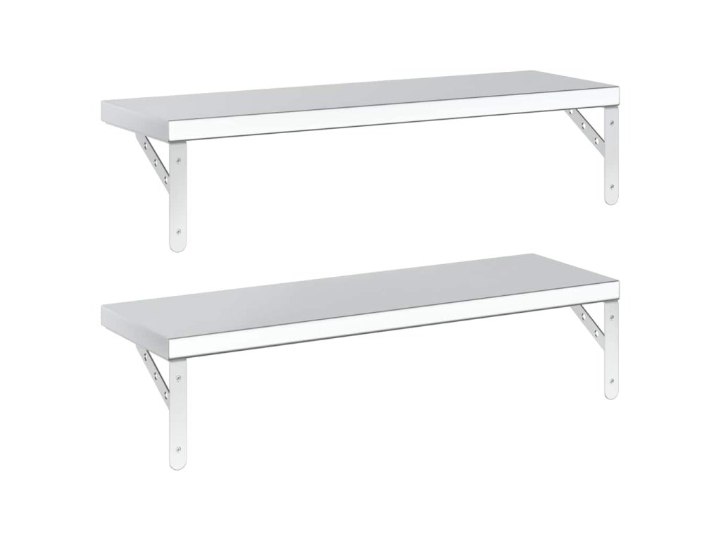 vidaXL Nástenné police 2 ks 75x23,5cm, strieborné, nehrdzavejúca oceľ