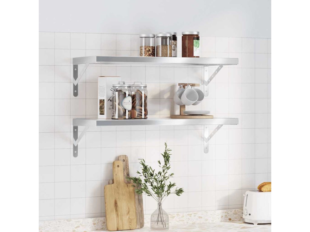 vidaXL Nástenné police 2 ks 75x30x3 cm strieborné nehrdzavejúca oceľ