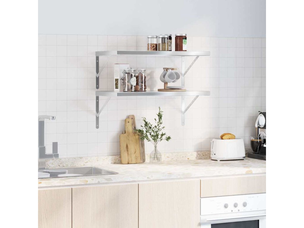 vidaXL Nástenné police 2 ks 75x40 cm, strieborné, nehrdzavejúca oceľ