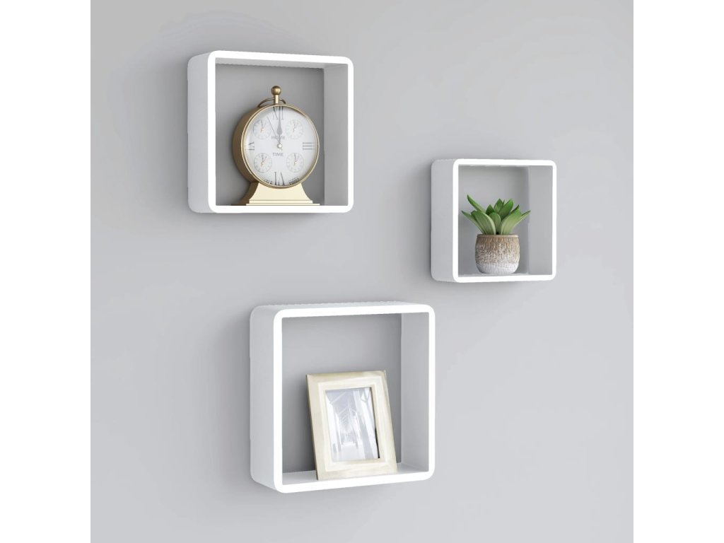 vidaXL Nástenné police v tvare kocky 3 ks, biele, MDF