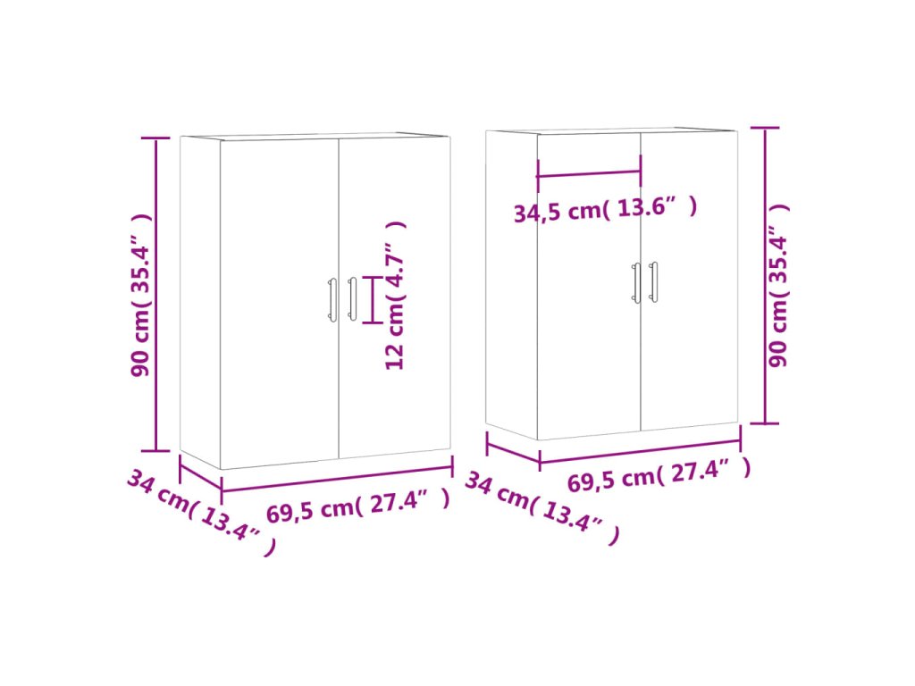vidaXL Nástenné skrinky 2 ks betónové sivé 69,5x34x90 cm