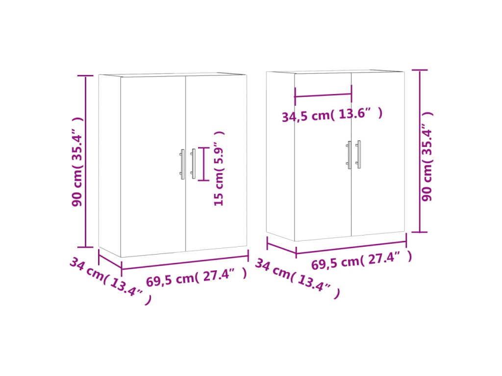 - Rozmery (každý): 69,5 x 34 x 90 cm (Š x H x V)