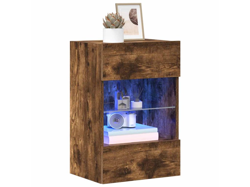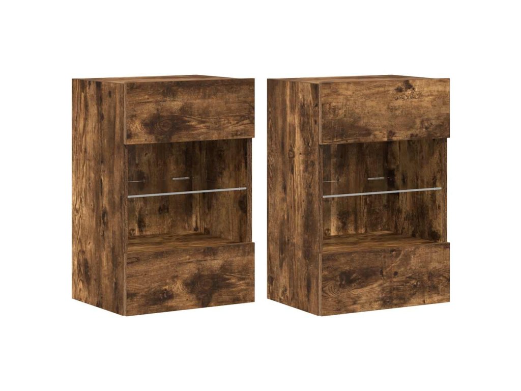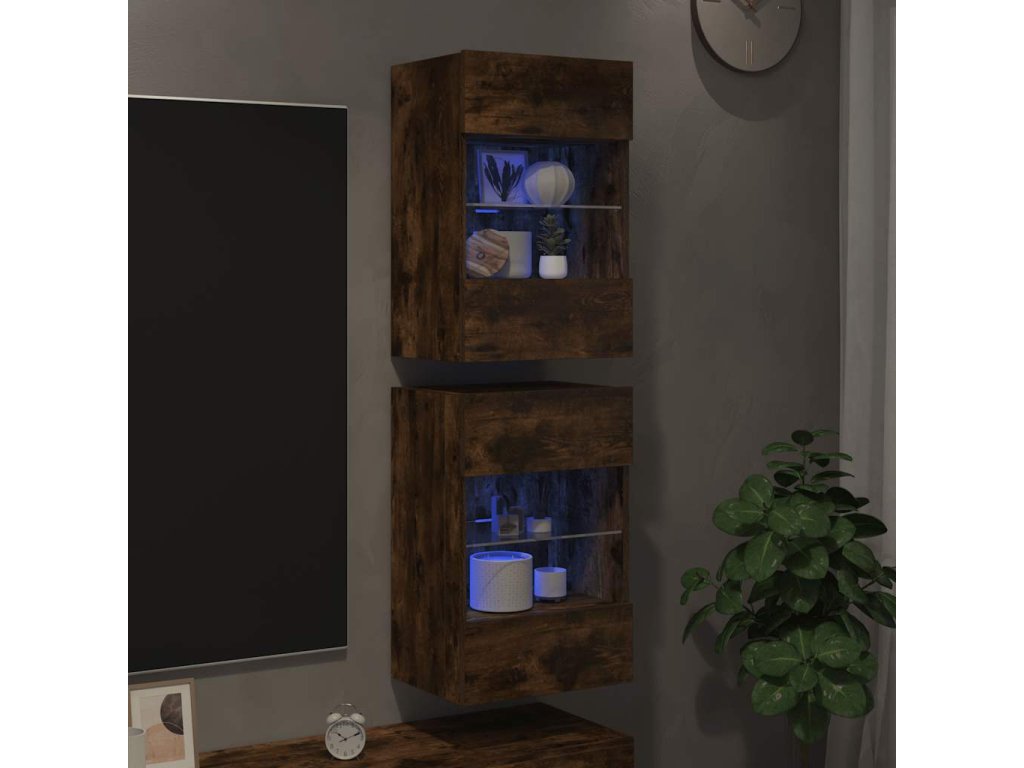 vidaXL Nástenné skrinky s LED osvetlením pre TV 2 ks dymový dub 40x30x60,5cm
