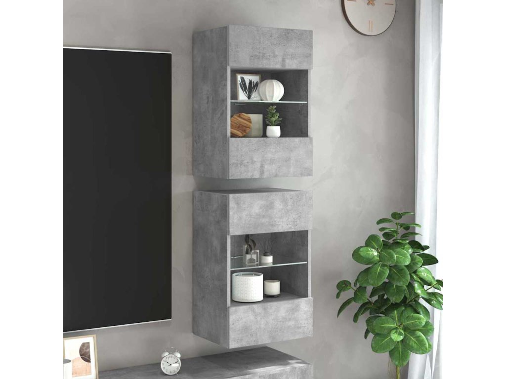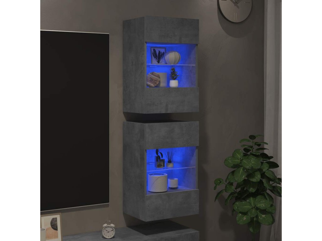 vidaXL Nástenné skrinky s LED osvetlením pre TV 2ks betón.sivé 40x30x60,5 cm
