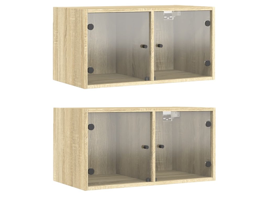 vidaXL Nástenné skrinky sklenené dvierka 2 ks dub sonoma 68,5x37x35 cm