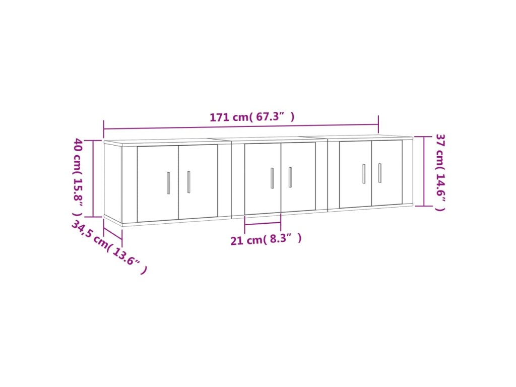 vidaXL Nástenné TV skrinky 3 ks hnedý dub 57x34,5x40 cm