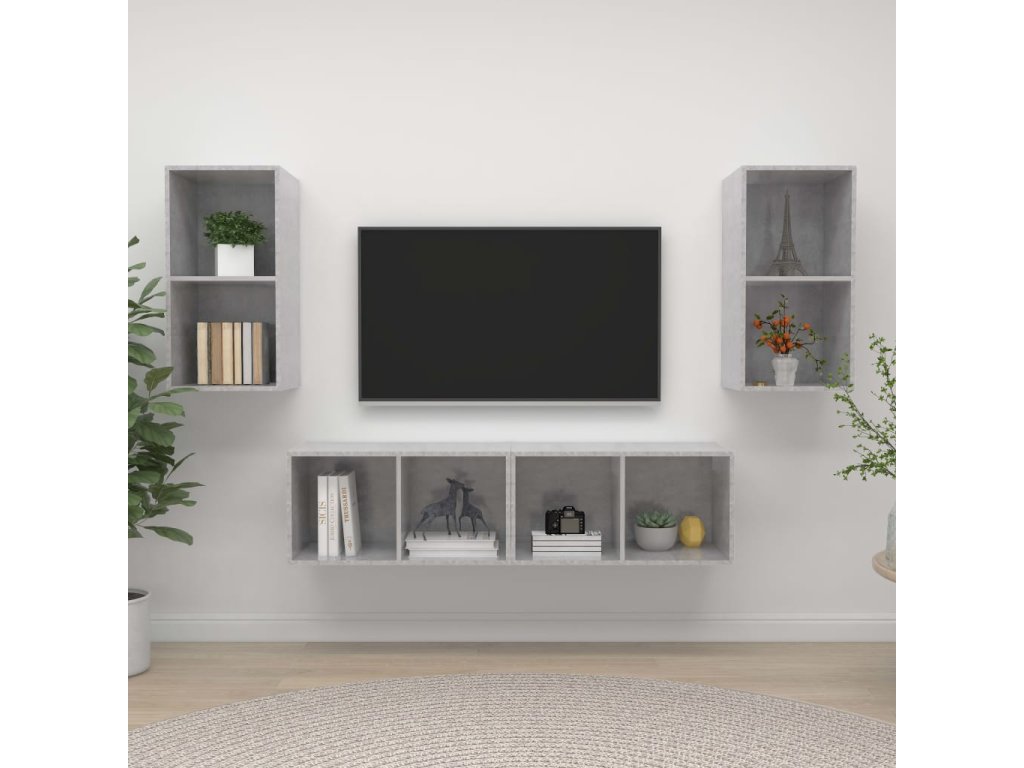 vidaXL Nástenné TV skrinky 4 ks, betónovo sivé, kompozitné drevo