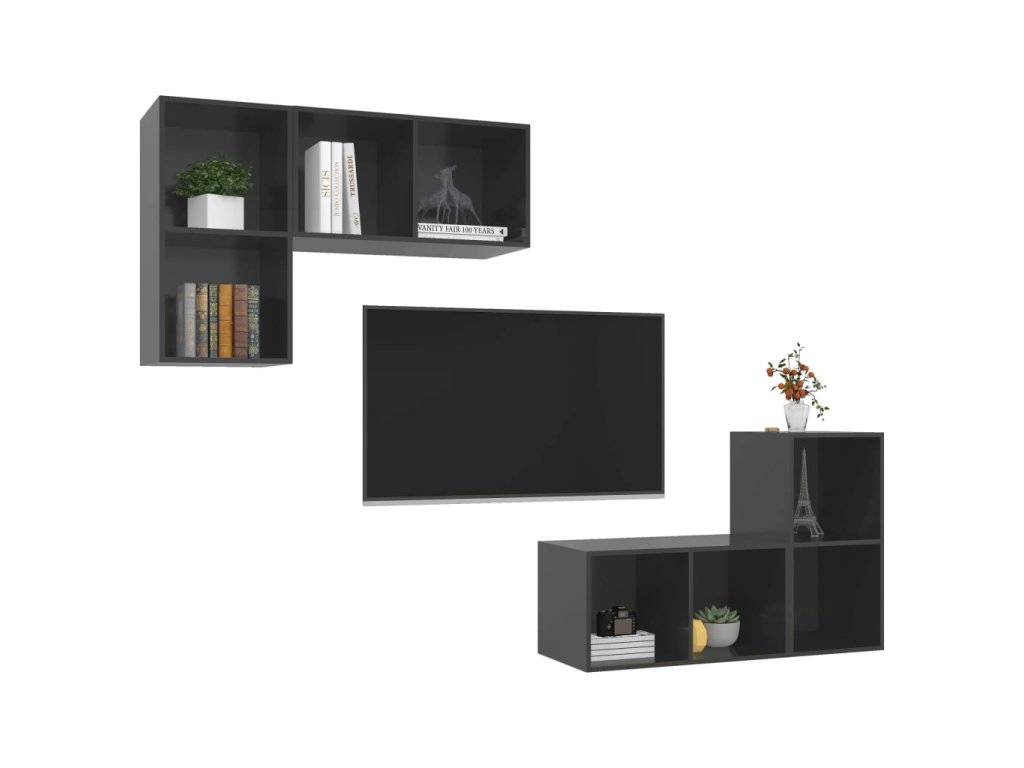 vidaXL Nástenné TV skrinky 4 ks lesklé sivé drevotrieska