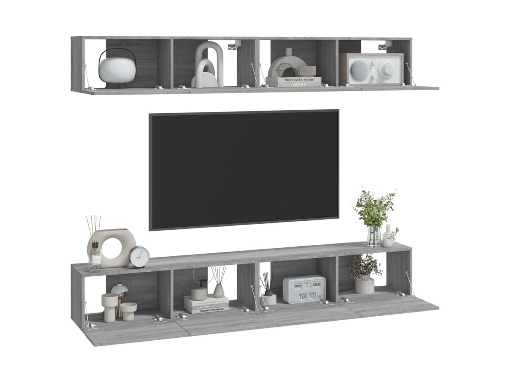 vidaXL Nástenné TV skrinky 4 ks sivý dub sonoma 100x30x30 cm