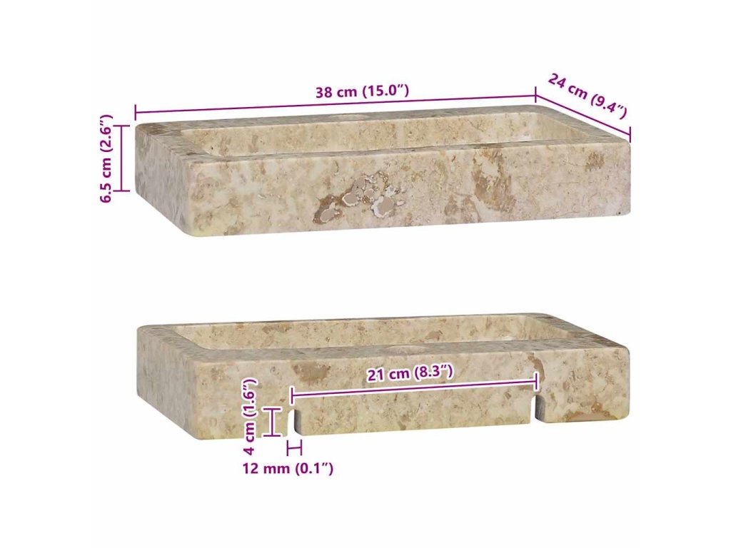 vidaXL Nástenné umývadlo, krémové 38x24x6,5 cm, mramor
