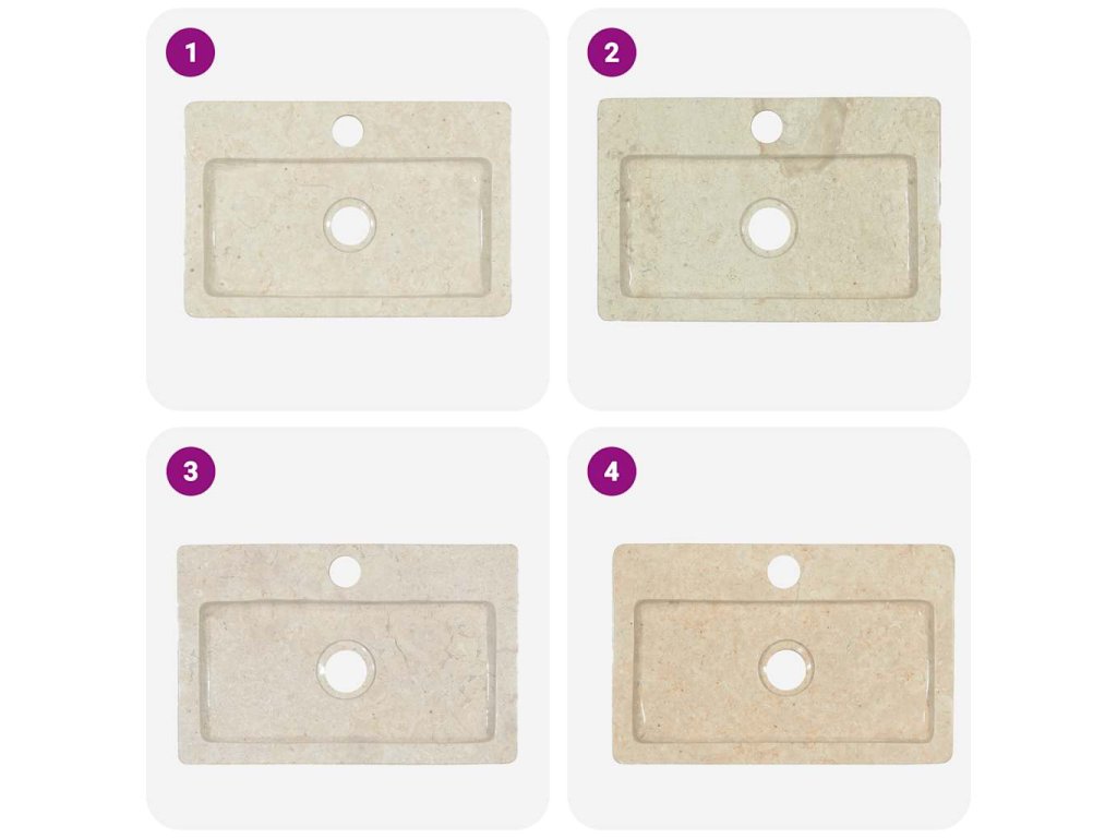 Poznámka: Mramor je prírodný materiál, a preto sa farba jednotlivých výrobkov môže líšiť. Výrobok môže byť v skutočnosti o niečo svetlejší alebo tmavší než na fotografiách a niekedy sa na ňom môže vyskytovať viacero farieb.
