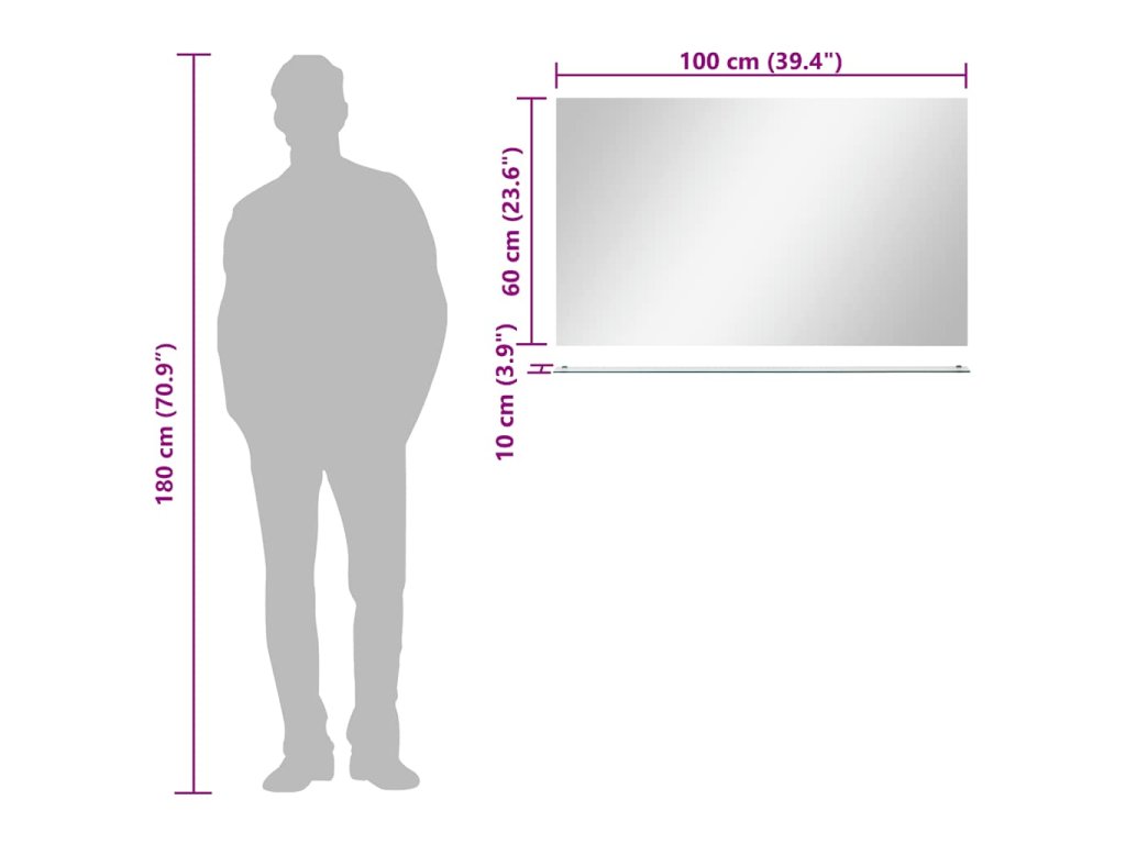 vidaXL Nástenné zrkadlo s poličkou 100x60 cm, tvrdené sklo