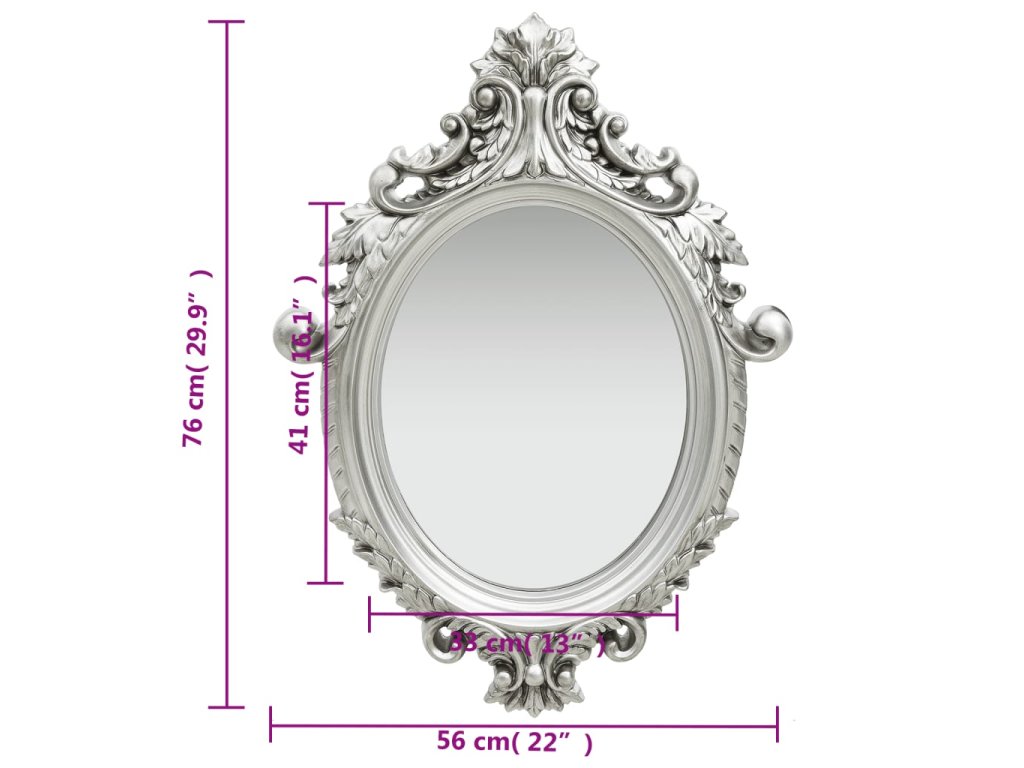 vidaXL Nástenné zrkadlo v zámockom štýle 56x76 cm strieborné