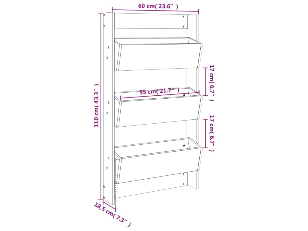 - Dostatok priestoru: Tento záhradný nástenný kvetináč má 3 boxy na kvety a každý box poskytuje veľký priestor na pestovanie zeleniny, byliniek, kvetov a rastlín.