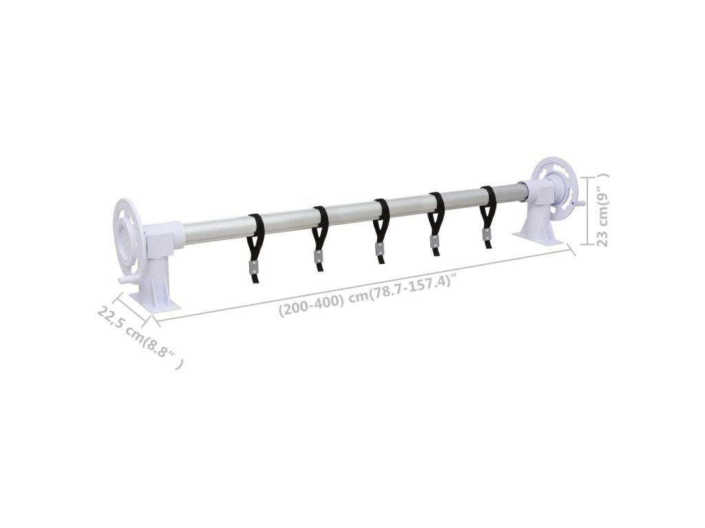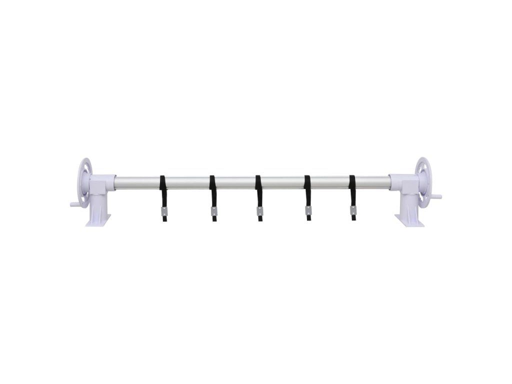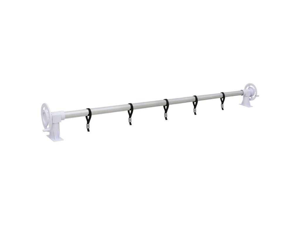 Navijak sa nastavuje pomocou posuvného mechanizmu a dá sa jednoducho posúvať do strán tak, aby sa prispôsobil rozmerom plachty (je vhodný na plachty s minimálnou šírkou 2 m a maximálnou šírkou 5 m). Je vybavený 2 kolieskami s rukoväťou, ktorá sa jednoducho ovláda. Keď otočíte kolieskom, plachta sa hladko navinie na navijak pomocou laniek, ktoré sú zahrnuté v balení. Navijak je vyrobený z pevného a trvácneho hliníka, ktorý je odolný voči korózii a poveternostným vplyvom.