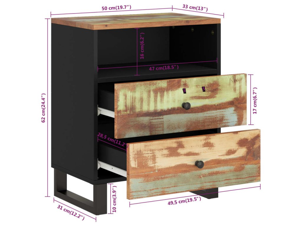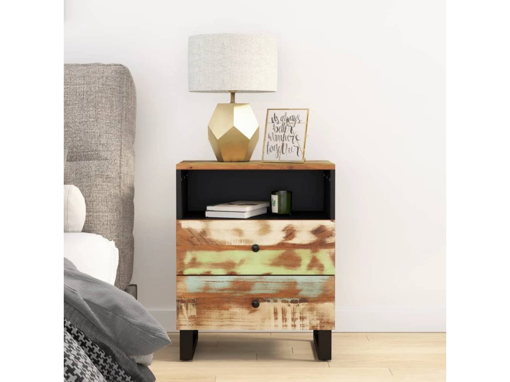 - Materiál: Recykovaný masív s povrchovou úpravou s rôznymi farbami, spracované drevo, kov