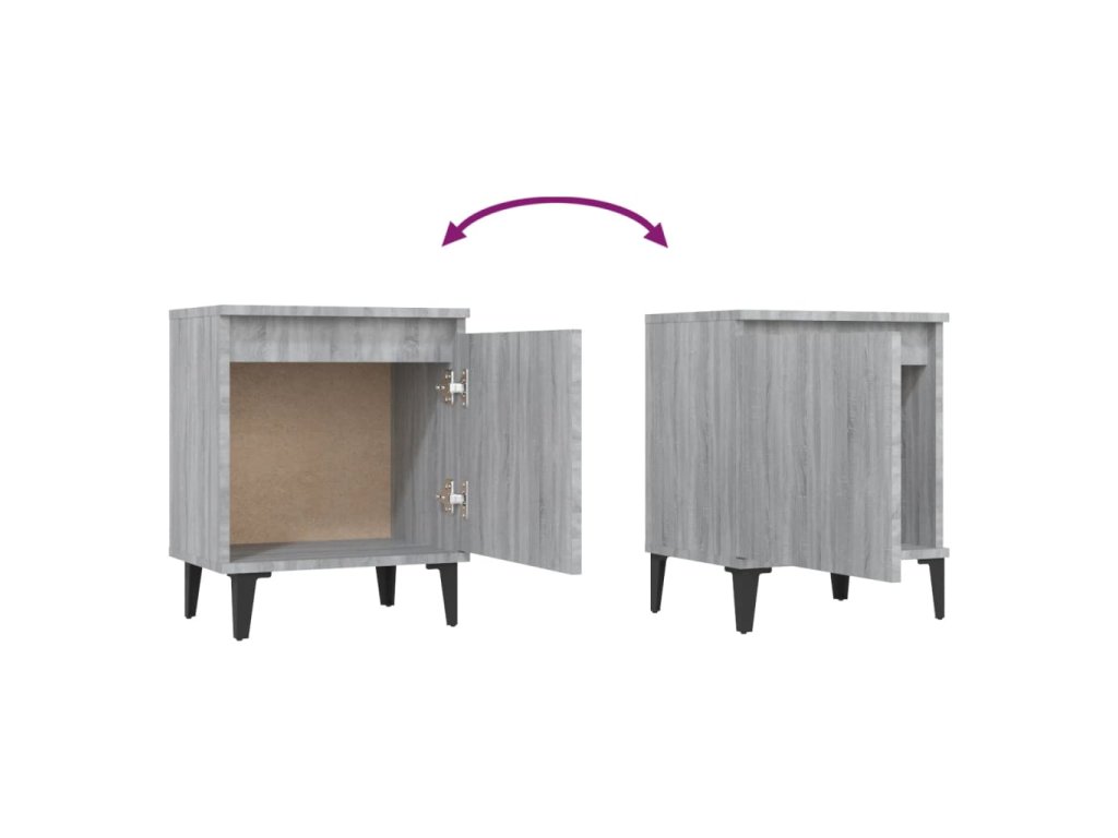 vidaXL Nočné stolíky, kovové nohy, sivá sonoma 40x30x50 cm