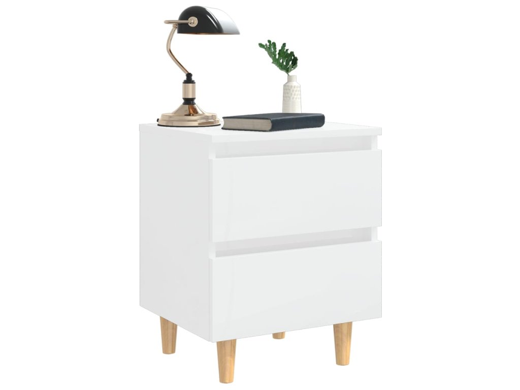 vidaXL Nočné stolíky, nohy z borovice 2 ks, lesklé biele 40x35x50 cm