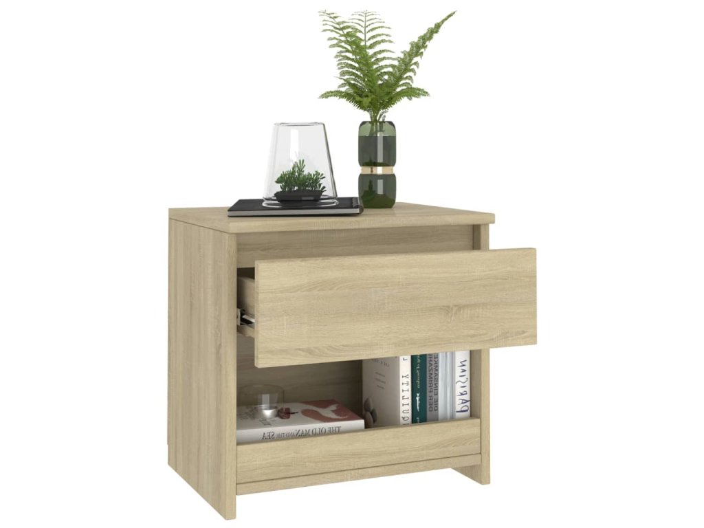 Nočné stolíky sú vyrobené z kompozitného dreva, vďaka čomu sú robustné, trvácne a všestranné. Predstavujú univerzálne skrinky do rôznych miestností, a preto ich môžete využívať napríklad aj v obývačke ako stolíky ku gauču. Odkladacie stolíky obsahujú 1 zásuvku a 1 priečinok, a tak poskytujú praktický úložný priestor na všetky nevyhnutné veci, ktoré si chcete položiť k posteli. Úložné skrinky sa okrem toho dajú jednoducho očistiť navlhčenou handričkou.