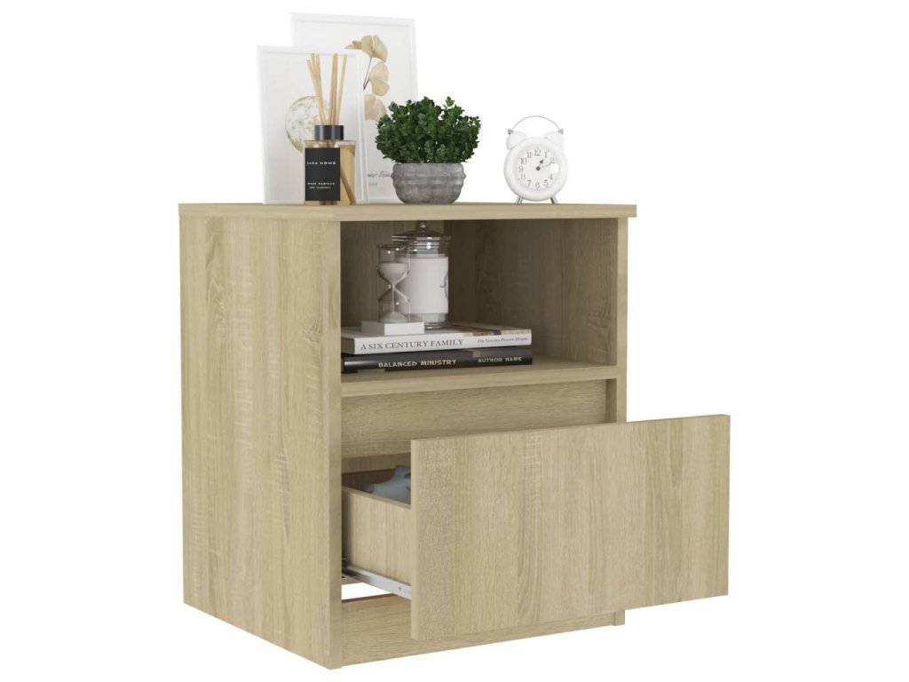 Vďaka robustnej konštrukcii sú tieto bočné skrinky veľmi odolné. Nočný stolík je vybavený 1 zásuvkou a 1 policou, ktoré poskytujú dostatok priestoru na prehľadné a dostupné uloženie časopisov, kníh, diaľkových ovládačov a iných drobných predmetov. Okrem toho sa tieto nočné stolíky ľahko čistia vlhkou handričkou.